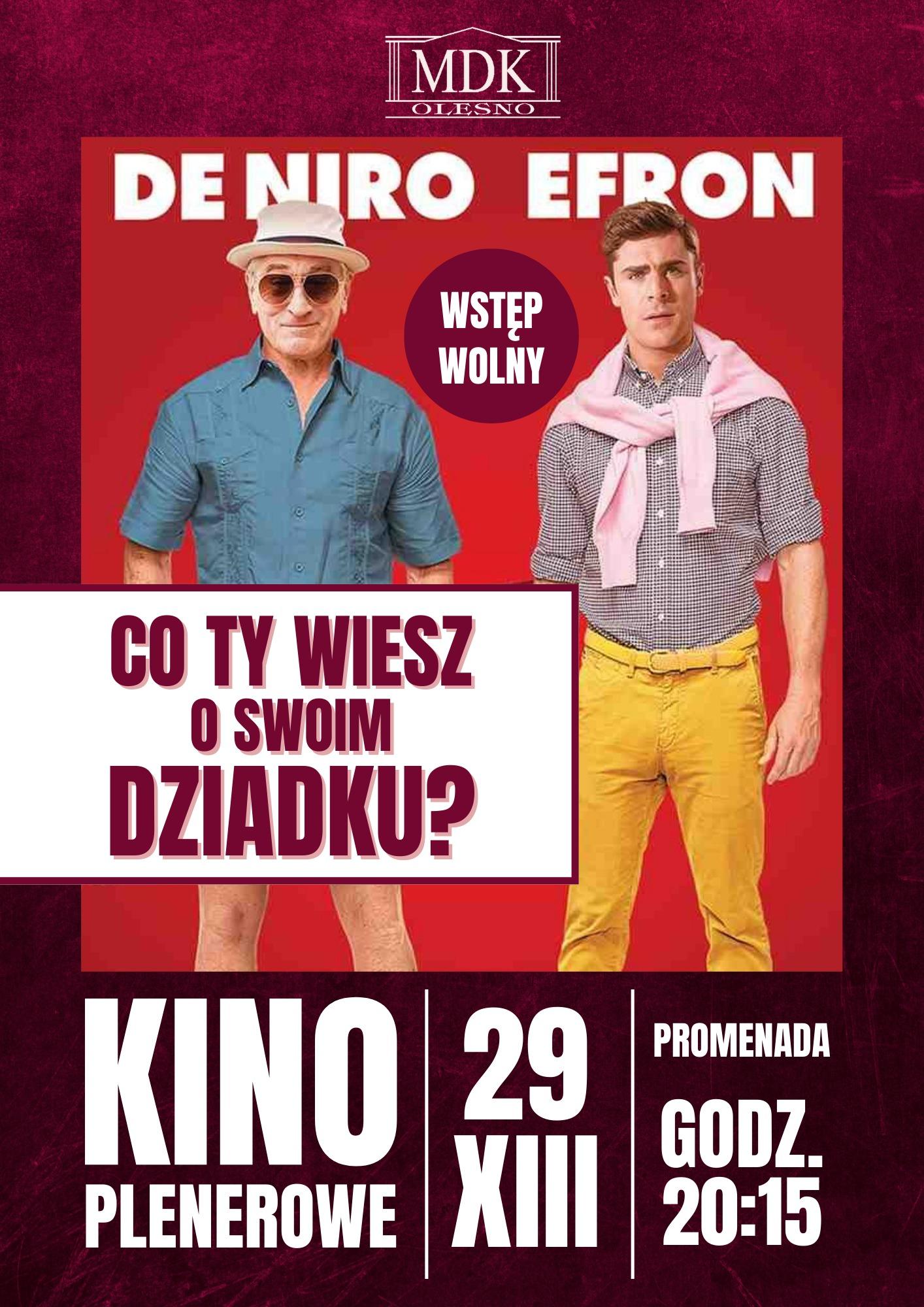 Zapraszamy na ostatnie w te wakacje KINO PLENEROWE 29 sierpniagodz. 20:15OLESKA PROMENADA film : ,,CO TY WIESZ O SWOIM DZIADKU ?" WSTĘP WOLNYWarto wziąć kocyk DO ZOBACZENIA |